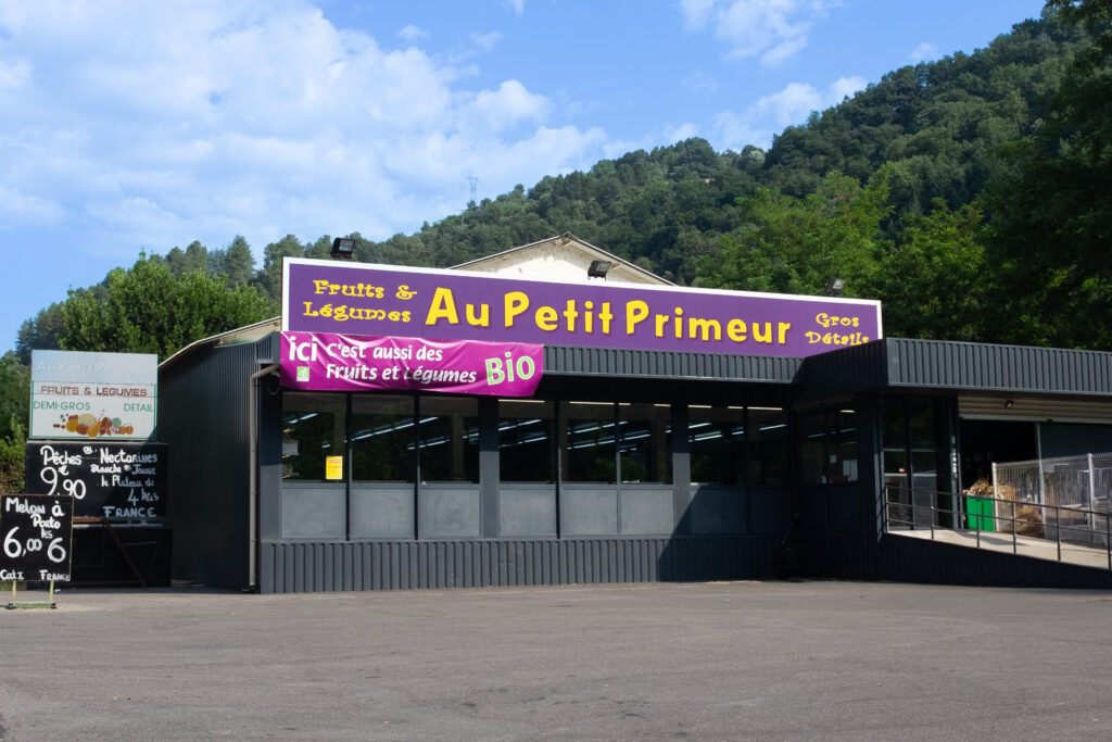 "Au cœur de l'Ardèche, notre équipe vous propose un large choix de fruits et légumes conventionnels et bio. Cerises et châtaignes évidemment, mais aussi une selection de produits fabriqués localement et en France."